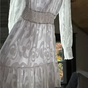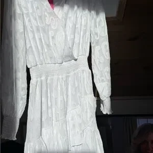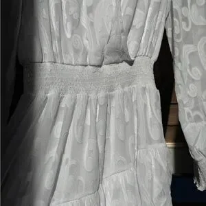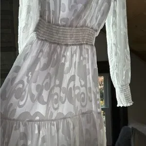 Chic long sleeve dress in resort white. Features a subtle swirl clip pattern.