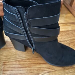 Material Girl Black Suede Boots Booties with Strap Detail Heels MMELANYF Size 9