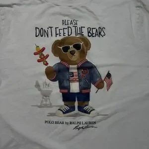 Polo Ralph Lauren Shirt Youth XL White Polo Bear Graphic Don't Feed The Bears