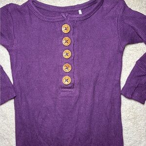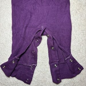 Charming Posh Peanut violet waffle knit long sleeve romper with button details. Ideal for everyday comfort.