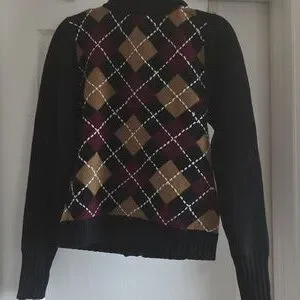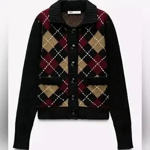 Zara Black Argyle Cardigan Sz Large
