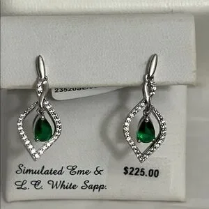 Elegant Emerald (Sim) & LC Sapphire Silver Earings