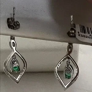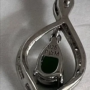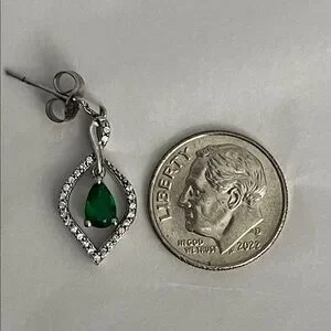 These elegant earrings feature a stunning green teardrop design set in a silver frame. Perfect for adding a touch of sophistication to any outfit.