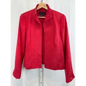 NINA MCLEMORE Open Front Textured Silk Cotton Jacket Collared Red Size 10