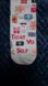 Gray socks featuring colorful gift boxes; some with metallic bows, and 'Treat Yo Self' text. IYKYK!