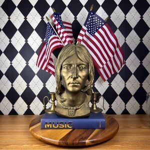 A rare collector’s piece that embodies both musical and pop-cultural history, this Lennon bust reflects Esco’s late 20th-century tradition of sculptural portraiture. Its solid weight and patinated finish lend a timeless quality—equally compelling as a conversation piece or a thoughtful gift for the devoted Beatles enthusiast.