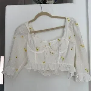 For Love & Lemons White Floral Blouse