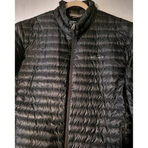 Keywords: Eddie Bauer jacket, Men's puffer jacket, Down filled coat, Winter jacket, Insulated outerwear, Black puffer coat, Warm jacket, Outdoor gear, Quilted jacket, Full zip jacket, Men's winter coat, Casual jacket, Activewear jacket, Lightweight down jacket