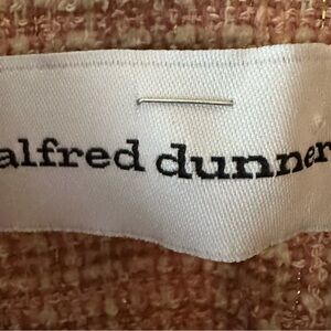 Alfred Dunner lined blazer in a textured pink and cream tweed fabric. Features a classic button-up design. Ideal for adding elegance to your wardrobe. Wear with slacks to add a layer of elegance wear with jeans and boots or heels for date night or girls night.