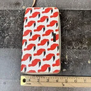 Kate Spade Toucan Parrott All Over Print Zip Around Long Wallet White Orange