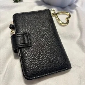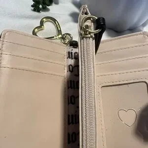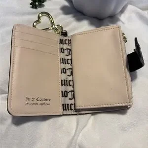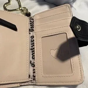 Elegant black wallet with gold details. Includes heart charm and Juicy Couture logo.