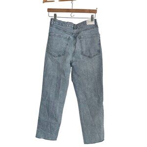 Update your denim collection with these Zara super high-rise ankle jeans. Designed in a flattering light blue wash, these jeans feature a slim fit with just the right amount of stretch for all-day comfort. The ankle-length cut makes them perfect for pairing with sneakers, heels, or boots.