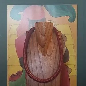AFRICAN VINYL VULCANIC DISC HEISHI BEAD RED NECKLACE