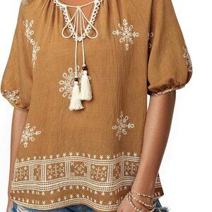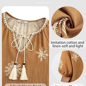 Exquisite Boho Design: Timeless Free-Spirit Aesthetic - Summer tops for women have Relaxed Silhouette: Puff lantern short sleeves + flowy hem, hand-embroidered smocked collars, adjustable bow tie front necklines, loose fit, floral printed hem for effortless bohemian charm. Boho shirts tops flattering all body types. Very suitable for hot summer. Pretty boho clothes for women, beach vacation clothes for women, resort wear for women 2025!