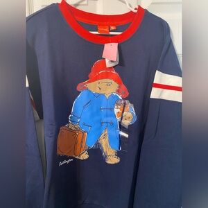 Paddington Bear women Navy Sweatshirt with Red and White Stripes NWT Large