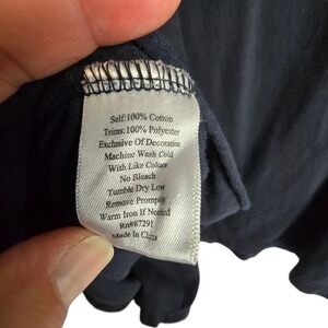 The Johnny Was Navy Embroidered Blue Geometric Pink Dial Orange Poncho Top Tunic in size L is a stylish and versatile blouse designed for women. Made from cotton, this top features a round neck, kimono sleeves, and a pullover closure. The geometric pattern with embroidered accents adds a unique touch to the navy blue base color, making it suitable for everyday wear.