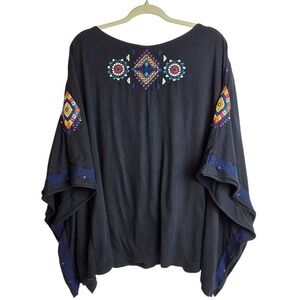 Johnny Was Navy Embroidered Blue Geometric Pink Dial Orange Poncho Top Tunic L