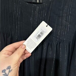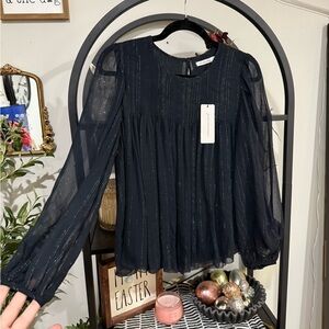 Unsubscribed silk black and silver long sleeve flowy pleated lined blouse