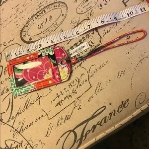 The luggage tag is attached to a wristlet strap in a coordinating pattern. NWT 🧡🩷❤️