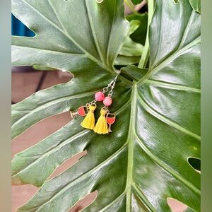 The yellow tassels radiate sunny confidence and creativity, while the wine glass charm symbolizes connection, pleasure, and self-expression.