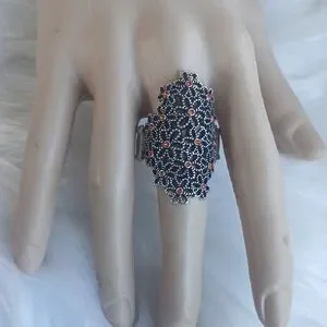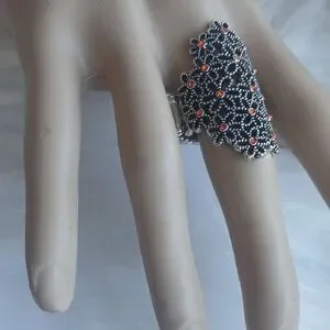 Intricate silver floral design with bright orange accents. Perfect for a bold statement. strech C2-77