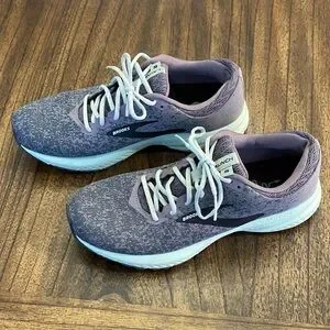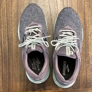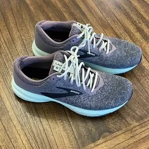Experience comfort with Brooks athletic shoes. Stylish purple and gray design. Ideal for running and casual wear.