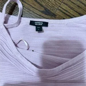 This stunning sheath dress from Express features a chic blush pink hue with gold accents, perfect for a casual night out. The sleeveless design with spaghetti straps and a midi length offers a modern and sophisticated look. Its elegant embellishments add a touch of glamour, making it a standout piece in any wardrobe.