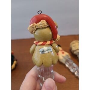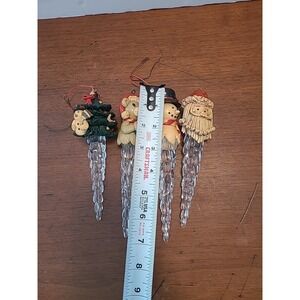 Vintage Set of 4 Icicle Christmas Ornaments Bear Snowman Santa Tree Decoration
