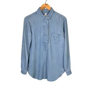 Ann Taylor LOFT Chambray Blue Softened Long Sleeve Relaxed Popover Tunic Shirt