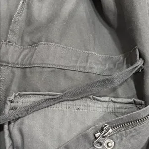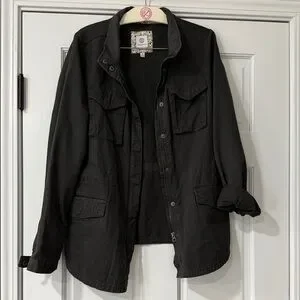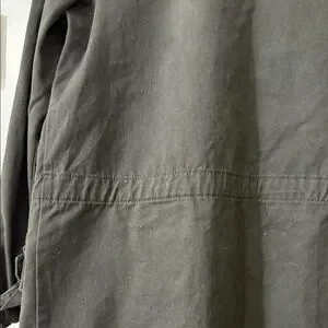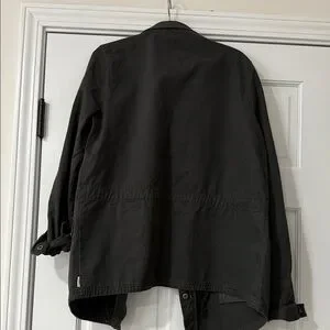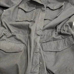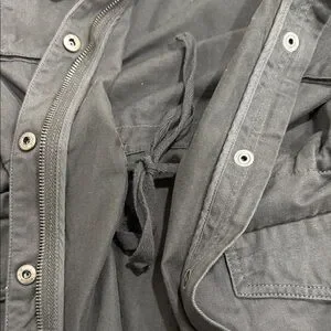 Classic gray utility style jacket. Durable and stylish. Features multiple pockets.Front zipper and snap closure and tie string inside for better fit.100% cotton in size M.Like-new condition.Sold as is.SKU#E-005