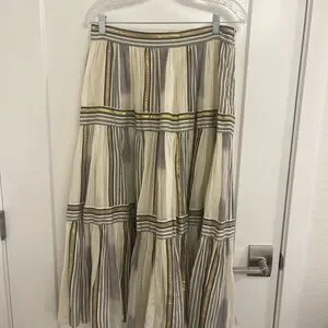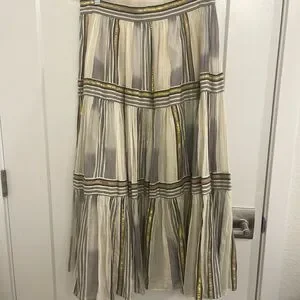 Banana Republic Zephyr Midi Skirt Gauzy Cream Gold Striped Midi Skirt