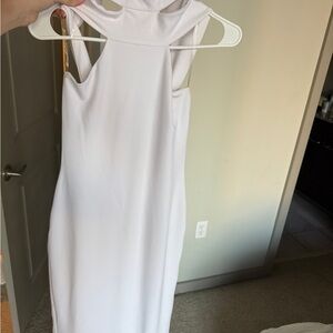 Chic one shoulder design. Sleek and modern. Perfect for formal events. It has been worn only twice, but for some reason, the buttons on the neck popped off (pictured) so that will need adjusting if you plan to wear it! Love this dress so much. Originally $289 so this is a total steal for a timeless gown. Size is small and fits sizes between 2-4.