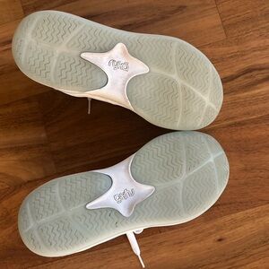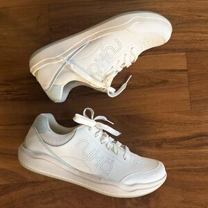 Excellent condition.. worn only once ! Great support and exceptional cushioning throughout for maximum comfort and designed for pickleball’s hard surface. Durable leather with perforations for added breathability plus a padded collar. These casual sneakers designed by Ryka are for a woman’s unique foot shape, muscle movement and build with a narrower heel, room, or toe, and softer foot cushioning. Selling currently on Amazon for $59.