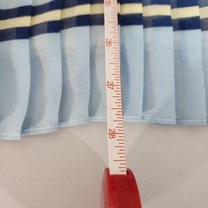 This stylish pleated skirt features a vibrant striped pattern in shades of blue, pink, and cream. Perfect for adding a pop of color to your wardrobe.