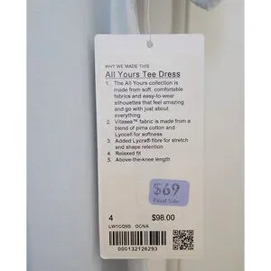 NWT Lululemon ALL YOURS TEE DRESS Light Blue Relaxed Fit Above Knee Women's Sz 4