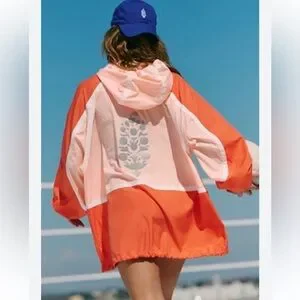 Features: Durable fabrication made with responsibly sourced, recycled materials; Water-resistant; lightweight; bungee adjustable hoodie and bottom hem; kanga pocket; contrast piping detail; logo graphic at back