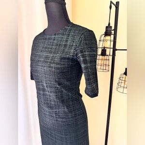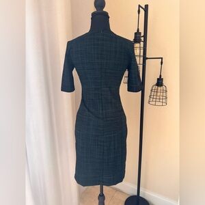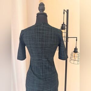 Theory Dress Women's 0 Green Black Crosshatch Rijik Short Sleeve Sheath Stretch
