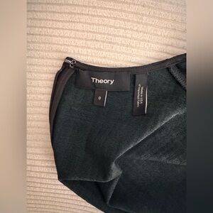 The Theory Dress in size 0 features a stylish green and black crosshatch pattern, with a flattering sheath silhouette and short sleeves. Made from a stretchy knit fabric, this dress is perfect for various occasions including travel, parties, casual outings, and business meetings. The dress has a classic designer feel with a round neckline, half sleeve length, and a convenient zip closure. Pair it with heels and a bold statement accessory for a chic and versatile look.