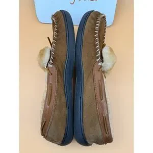 Cabelas Mens 12 M Brown Suede Genuine Shearling Lined Moccasin Shoes Slippers