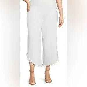 Slim Factor by Investments Stretch Crop Pants Size Medium with Pom Pom Hems