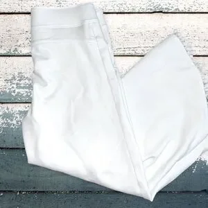The Slim Factor by Investments pants for women are a stylish and slimming option in a crisp white color. These pull-on pants feature a knit stretch fabric made of nylon, spandex, and rayon for a comfortable and flattering fit. With a cropped style and pom-pom accents, these pants provide a trendy and modern look while also offering a slimming effect. Perfect for casual or dressed-up occasions, these pants are a versatile addition to any wardrobe.