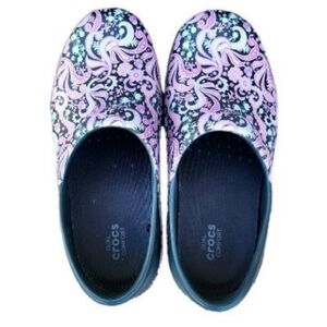 CROCS Neria Pro II Clogs Pink Paisley Flower Floral Black Dual Work Uniform 8