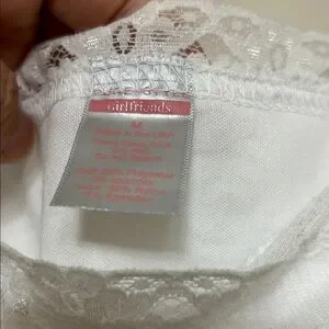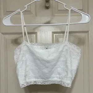 Stylish white crop top with elegant rose lace overlay and lace trim. Under a cardigan or denim jacket, or another sheer top, this piece is so pretty and feminine! Lightweight, too. In excellent condition.