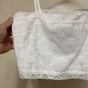 Pure Style Lace Crop Top White Semi-Sheer Gorgeous Rose Floral Lace Overlay M