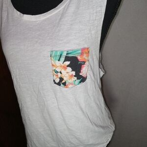PINK Victoria's Secret White Tank Top Casual Style Floral Pocket