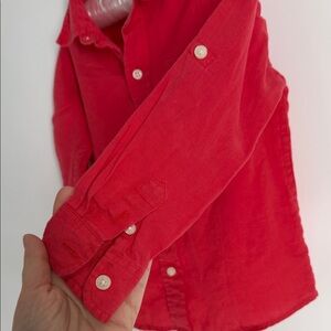 Janie and Jack Red Kids Linen Button/Tab Button Shirt - 3