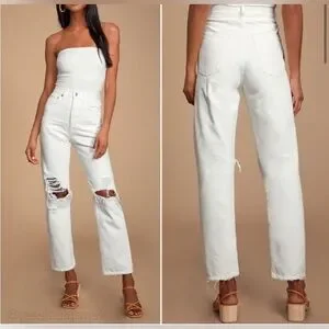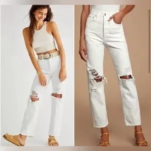 AGOLDE 90's Mid Rise White Loose Fit Distressed Jeans