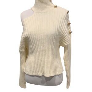 ‼️👉 Luxurious cream turtleneck sweater by Balmain. Features elegant gold button accents. Perfect for a sophisticated look. This beautiful top addresses your knitwear with this tactile cream cropped sweater. It’s slashed cutout across one shoulder. Size L. Brand new with the tags 🏷️ on. Please note 📝 that this item was a sample and it was used for a variety purposes in Europe✔️item was provided by the advertising agency ✔️Sales are final⛔️No return after purchase⛔️No guarantee of authenticity, due to poshmark fees low offers are not acceptable. Please check all details before deciding to purchase✔️ Thank you 🙏