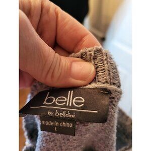 Gray cropped sweater by Belle by Belldini features a gray heather yarn and a shorter length. Sweater is adorned by pearls on each shoulder. Listed as cropped, but this sweater doesn't show any stomach. Bought to wear over a tank dress for Winter.