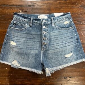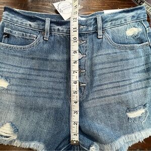NWT KanCan Sofia Ultra High Rise Distressed Exposed Button Fly Shorts Sz Large